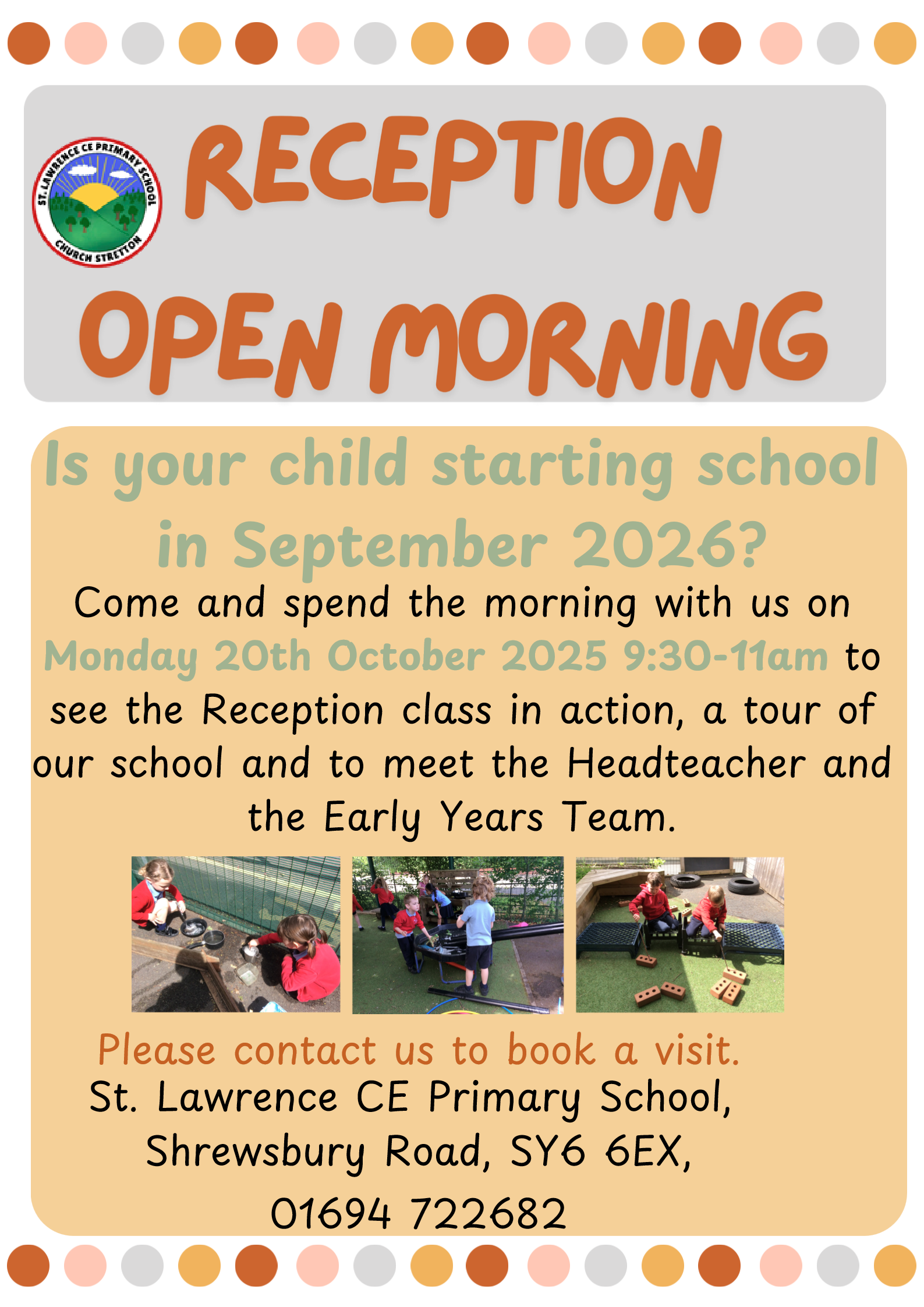 St Lawrence Church of England Primary School can be found in the lovely market town of Church Stretton, surrounded by South Shropshire's gorgeous hills (Long Mynd, Caer Caradoc, Lawley, Hazler and Ragleth). This is a fantastic school with so many strengths and distinctive characteristics. We have bubbly and confident children who are keen to learn and do their best - from the two-year olds in our Nursery up to the eleven-year olds in Year 6. The governors, members of staff and parents work closely together to ensure that the pupils’ needs are met and that the children enjoy school and achieve their potential.